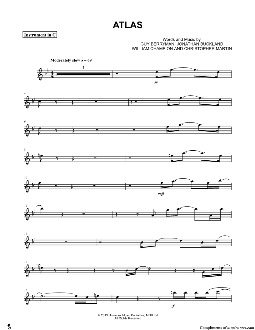 C Instrument, range: G4-A6 (Violin, Oboe, Flute or Recorder) | |