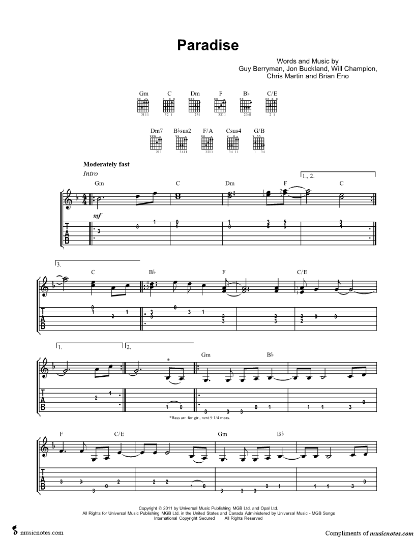 Guitar Tab Guitar/Vocal/Chords |