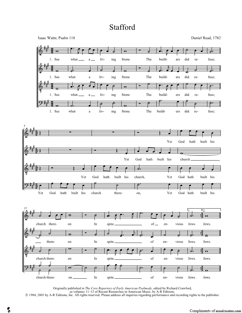See what a living Stone The builders did refuse; Yet God hath built his church thereon In spite of envious Jews. |
