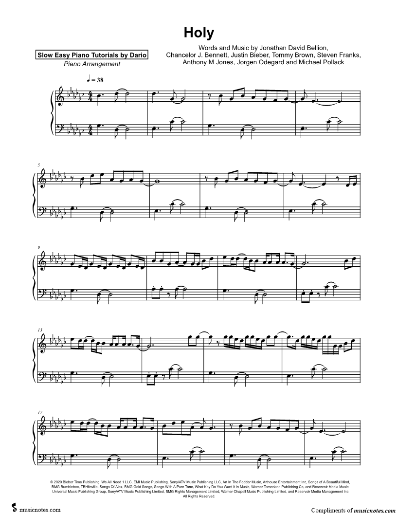 Holy [Slow Easy Piano Tutorial] |