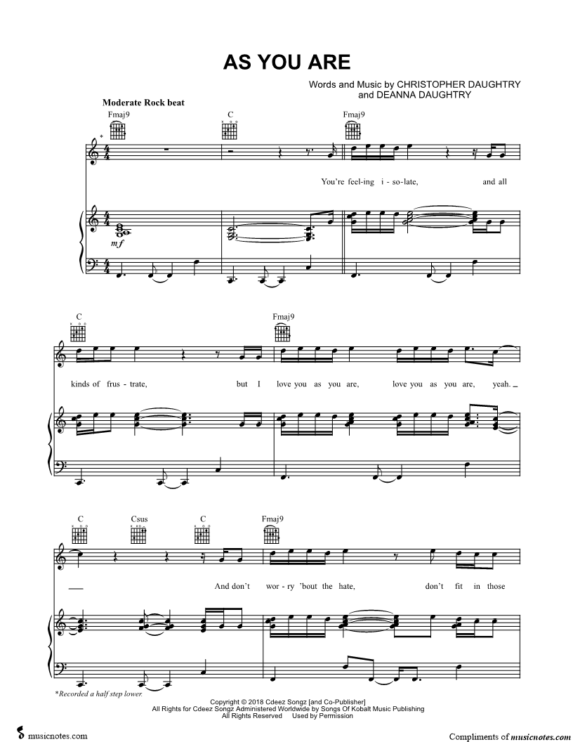 You're feeling isolate, and all kinds of frustrate, but I love you as you are, love you as you are, yeah. |