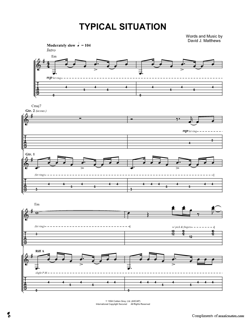 Guitar Tab Guitar/Vocal |