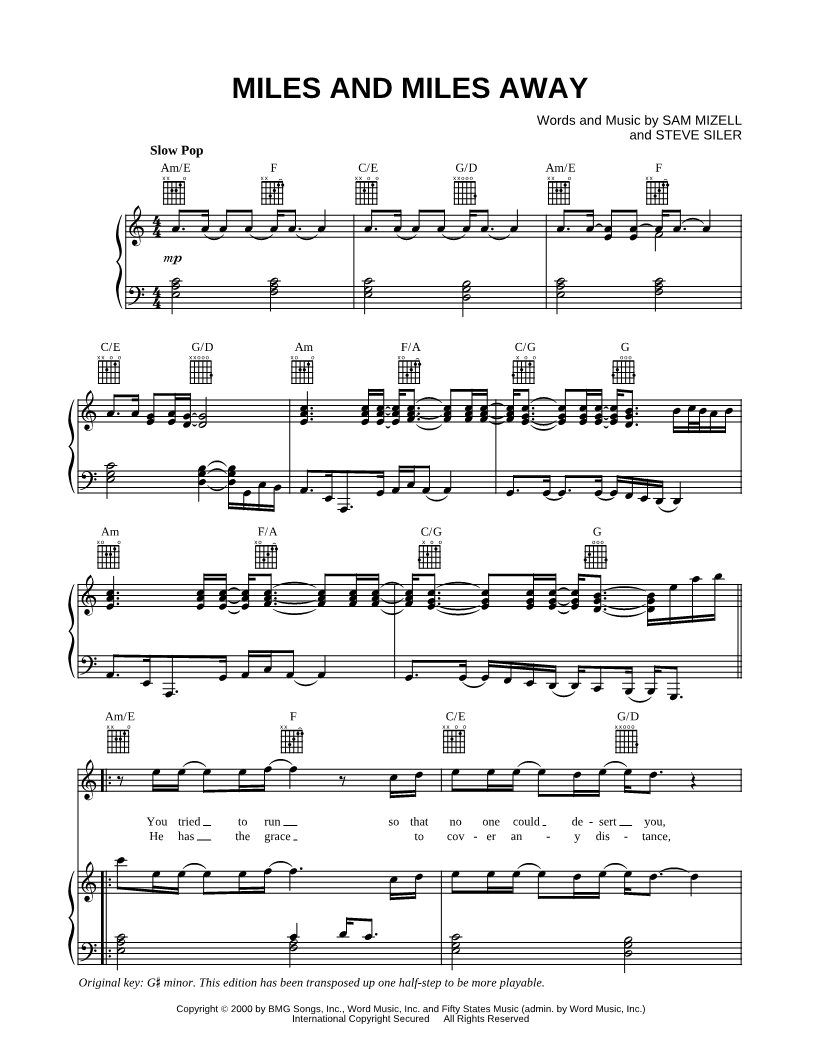 Many of the arrangements on Musicnotes have transpositions available, typically in C Major, as well as 3 sharps and 3 flats. If you do not see your desired key, you can request a transposition by reaching out to Customer Support.