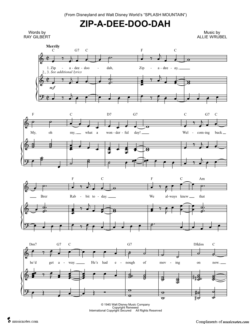 "This song from Disney Worlds SPLASH MOUNTAIN is lively and easy. The words are cute and po..." Read reviews