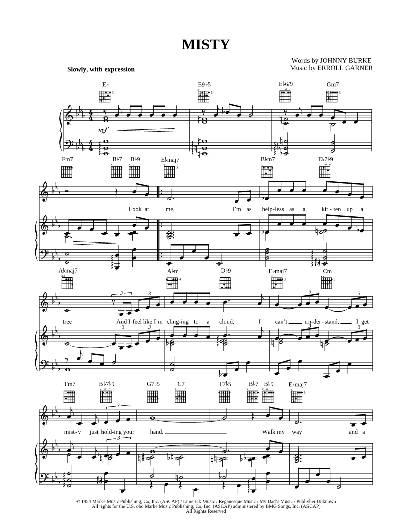 Look at me, I'm as helpless as a kitten up a tree And I feel like I'm clinging to a cloud, I can't understand, I get misty just holding your hand. |
