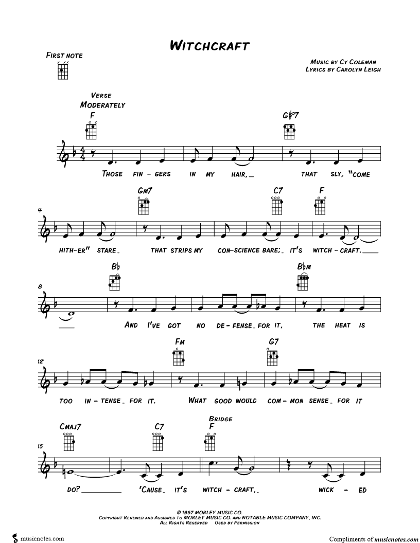 Those fingers in my hair, that sly, "come hither" stare that strips my conscience bare; it's witchcraft. |