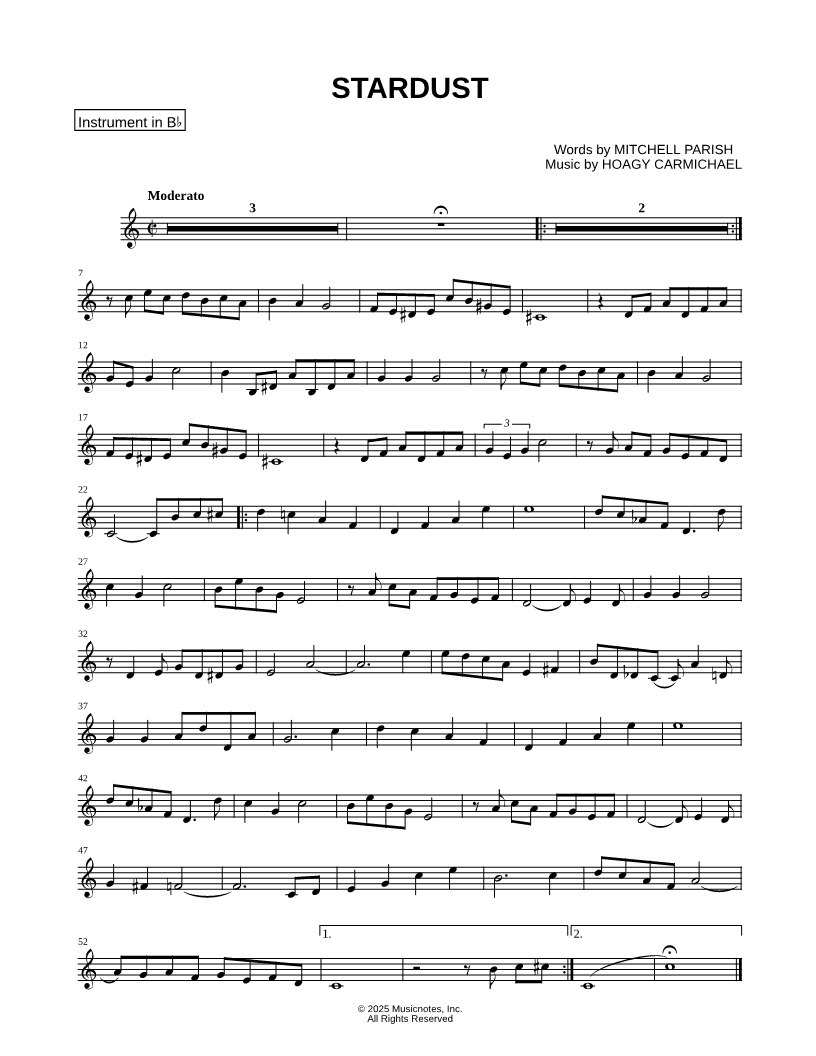 Bb Instrument, range: B3-E5 (Tenor Saxophone, Clarinet, Trumpet or Soprano Saxophone) | |