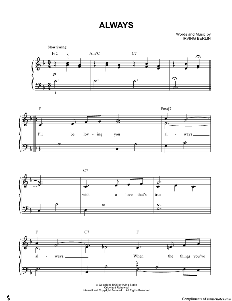 Musicnotes sells a wide variety of digital sheet music products including Singer Pros, Beginner Notes, Choral music, Piano Solos, Lead Sheets, Piano/Vocal/Guitar, Solo and Accompaniment, and fretted instrument tablature.