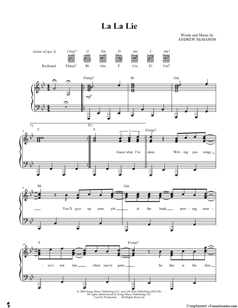 Guess what I'm done Writing you songs You'll give up your job at the bank proving money's not fun when you're gone So this is the first verse It's not very long |