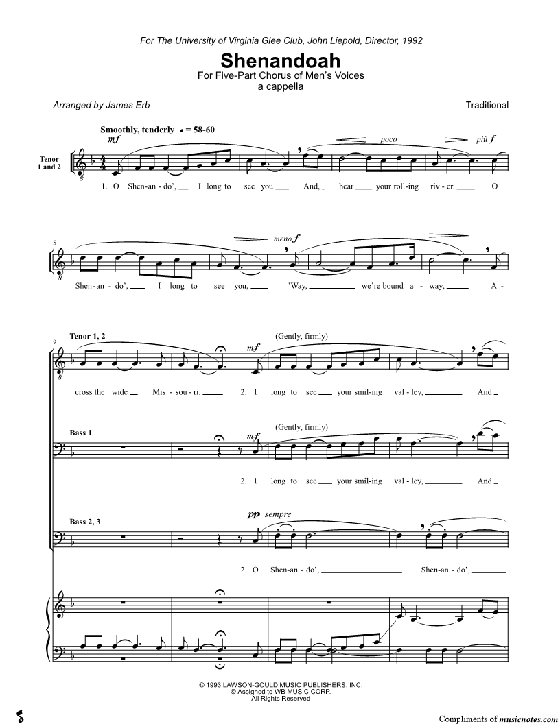 O Shenando', I long to see you and, hear your rolling river |