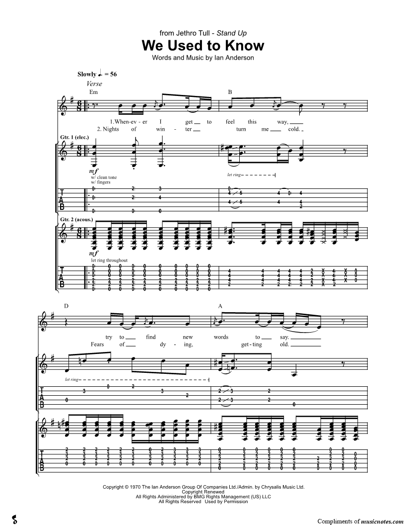 Guitar Tab Guitar/Vocal |