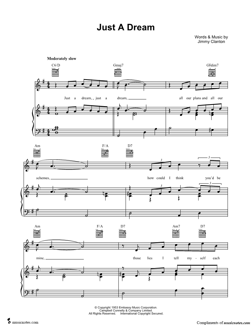 Just a dream, just a dream, all our plans and all our schemes, how could I think you'd be mine, those lies I tell myself each time. |