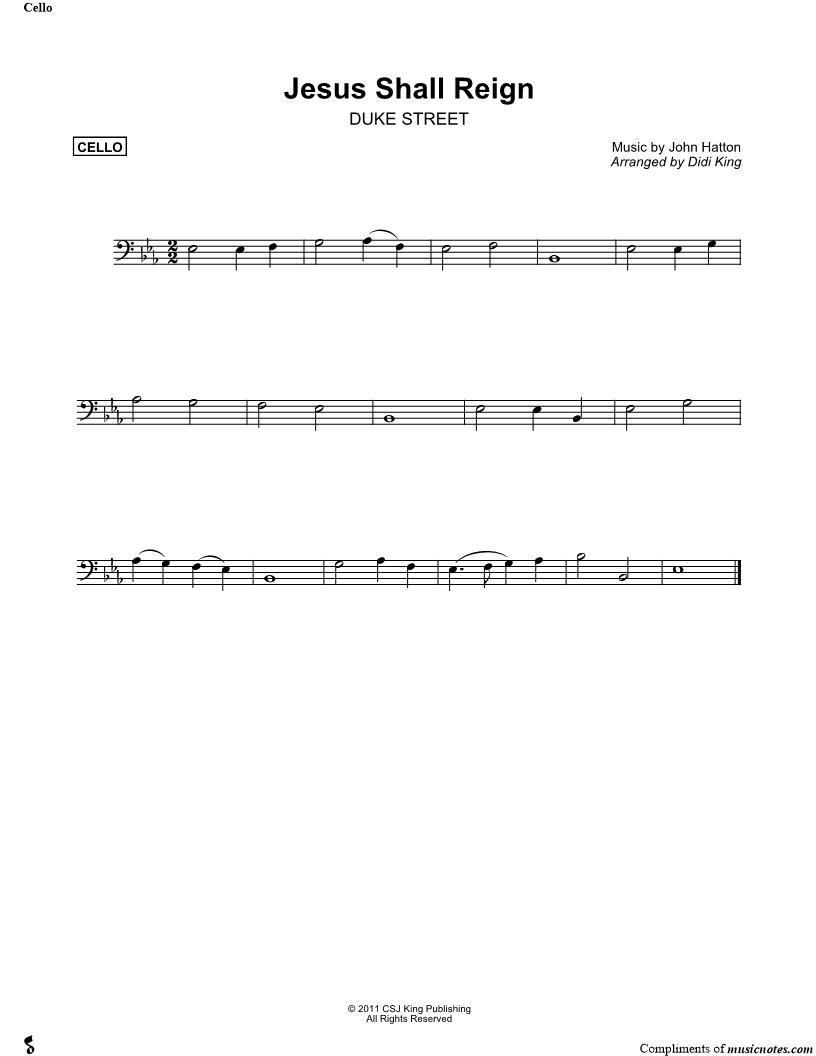 Jesus Shall Reign - Cello (String Quartet) |