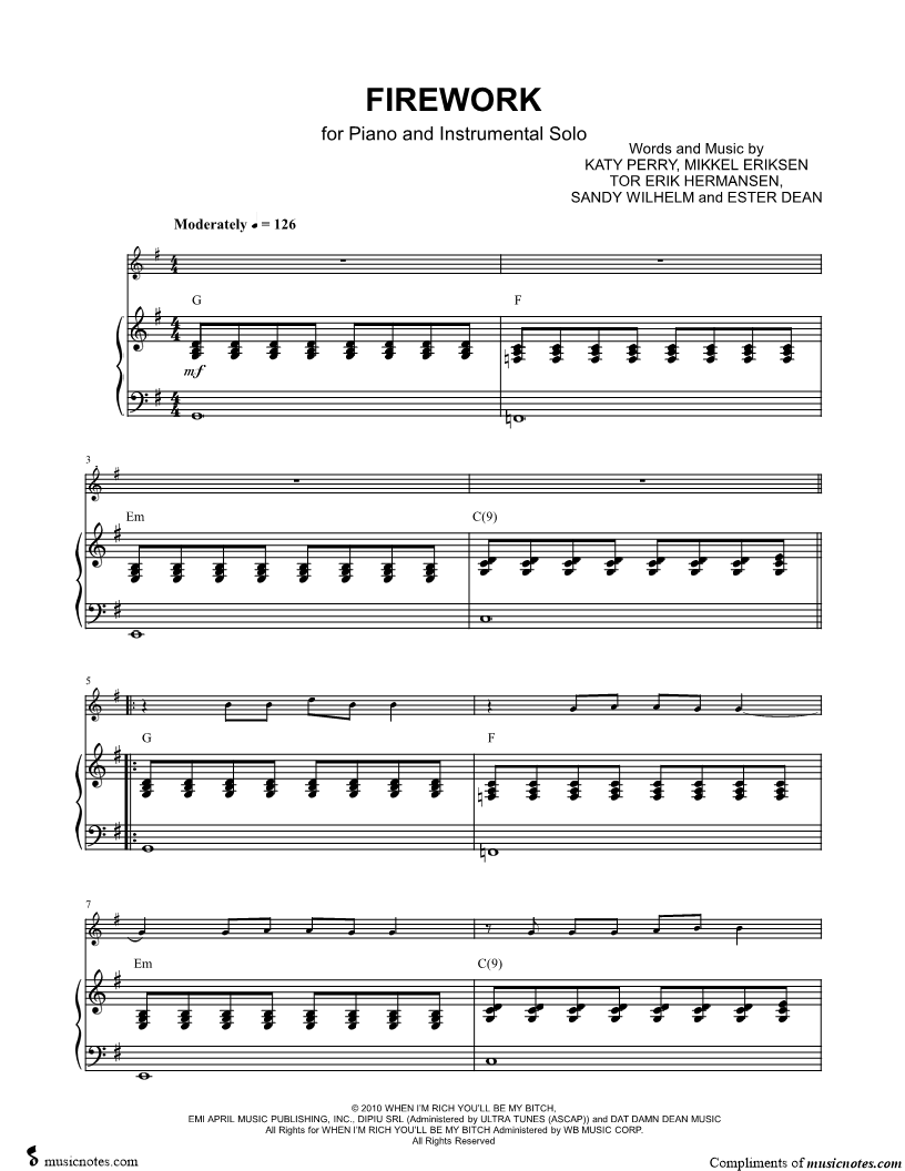 Firework - C Instrument & Piano