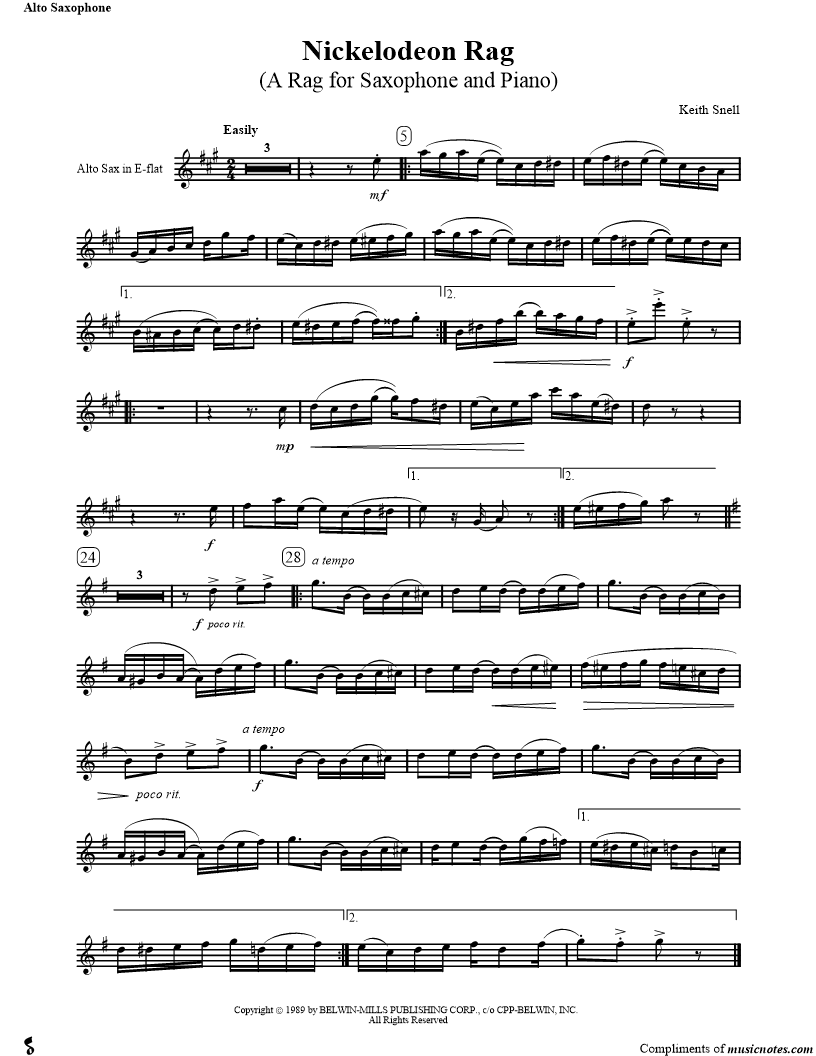 Collection: Nickelodeon Rag For Alto Saxophone' Alto Saxophone and Piano