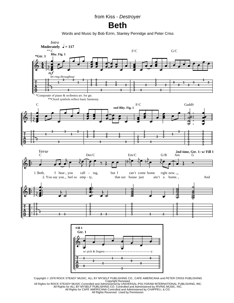 Guitar TAB Guitar/Vocal |