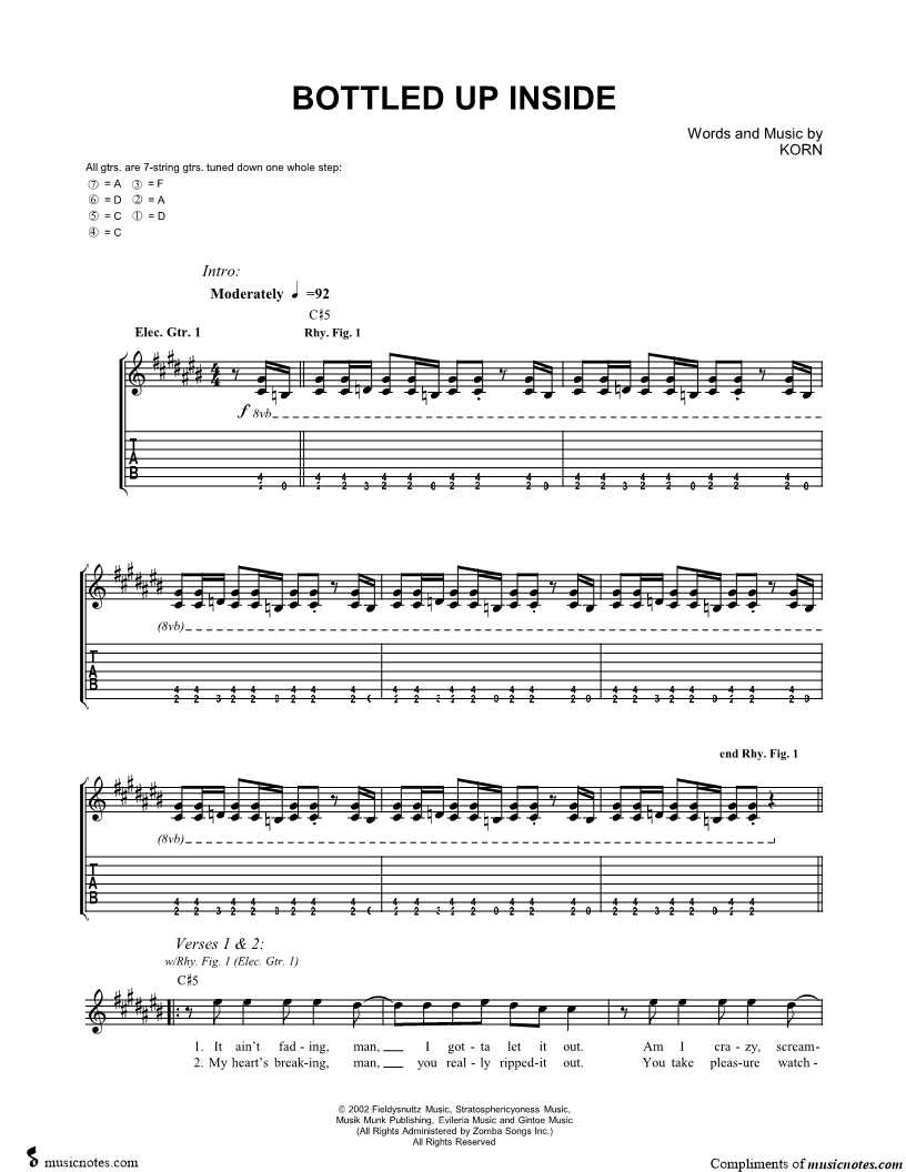 Voice, range: B4-A5 Guitar 1, range: B3-E6 Guitar 2, range: C#4-D5 Guitar 3 Guitar 4 | |