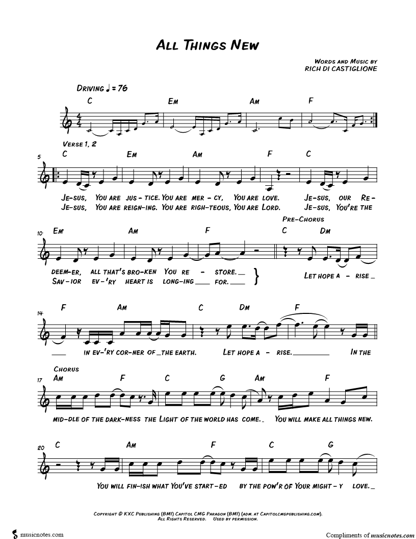 Many of the arrangements on Musicnotes have transpositions available, typically in C Major, as well as 3 sharps and 3 flats. If you do not see your desired key, you can request a transposition by reaching out to Customer Support.