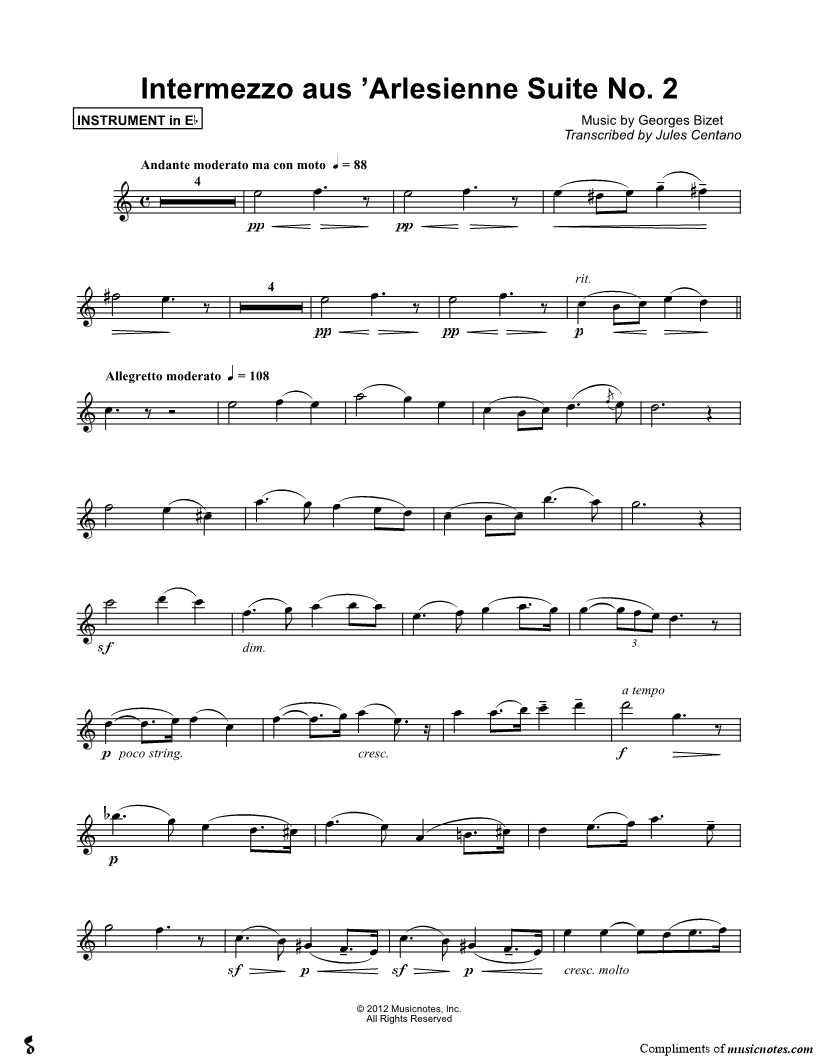 Intermezzo - Eb Instrument & Piano Accompaniment from L'Arlésienne Suite No. 2