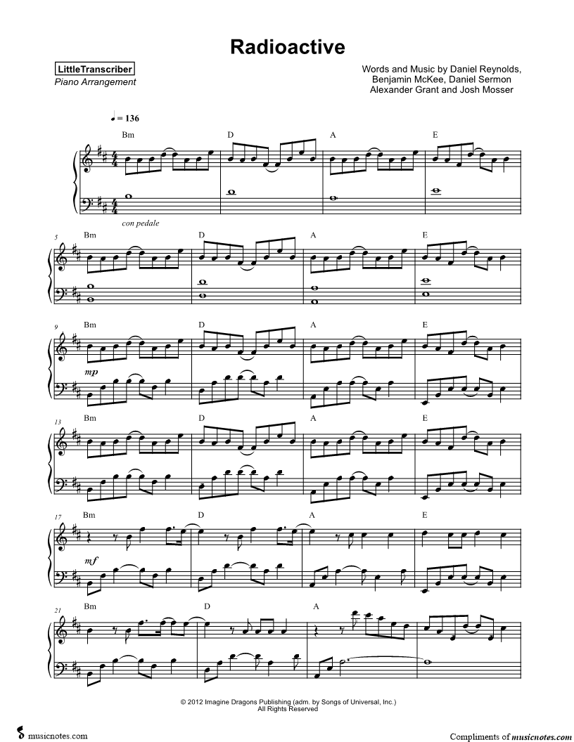 Musicnotes sells a wide variety of digital sheet music products including Singer Pros, Beginner Notes, Choral music, Piano Solos, Lead Sheets, Piano/Vocal/Guitar, Solo and Accompaniment, and fretted instrument tablature.