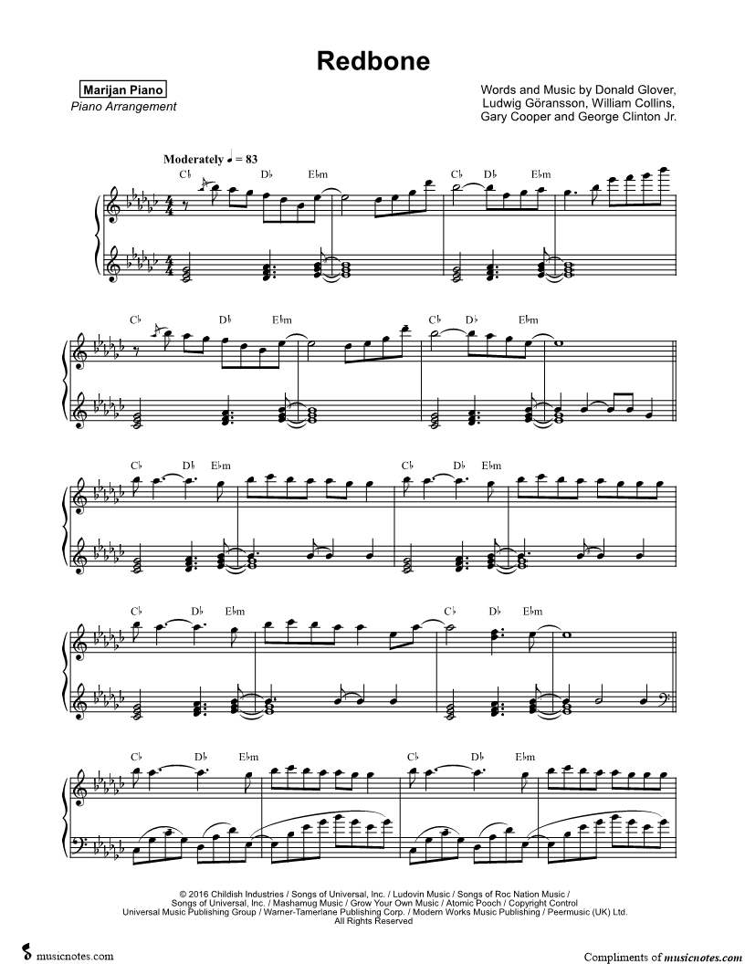 Many of the arrangements on Musicnotes have transpositions available, typically in C Major, as well as 3 sharps and 3 flats. If you do not see your desired key, you can request a transposition by reaching out to Customer Support.
