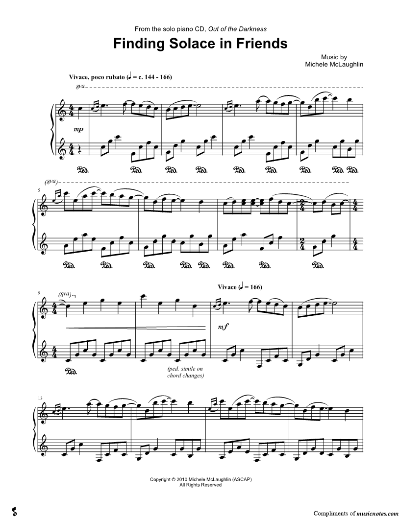 Musicnotes sells a wide variety of digital sheet music products including Singer Pros, Beginner Notes, Choral music, Piano Solos, Lead Sheets, Piano/Vocal/Guitar, Solo and Accompaniment, and fretted instrument tablature.