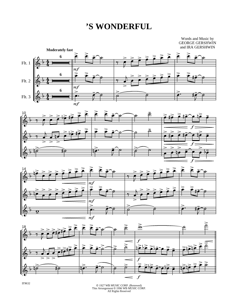 Flute 1, range: C5-F#6 Flute 2, range: A4-D6 Flute 3, range: A4-Bb5 | |