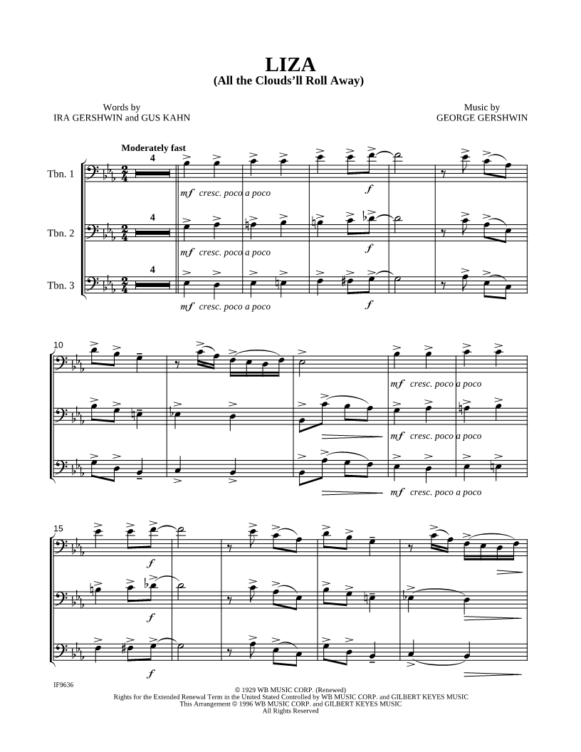 Trombone 1, range: D3-F4 Trombone 2, range: Bb2-D4 Trombone 3, range: Bb2-A3 | |