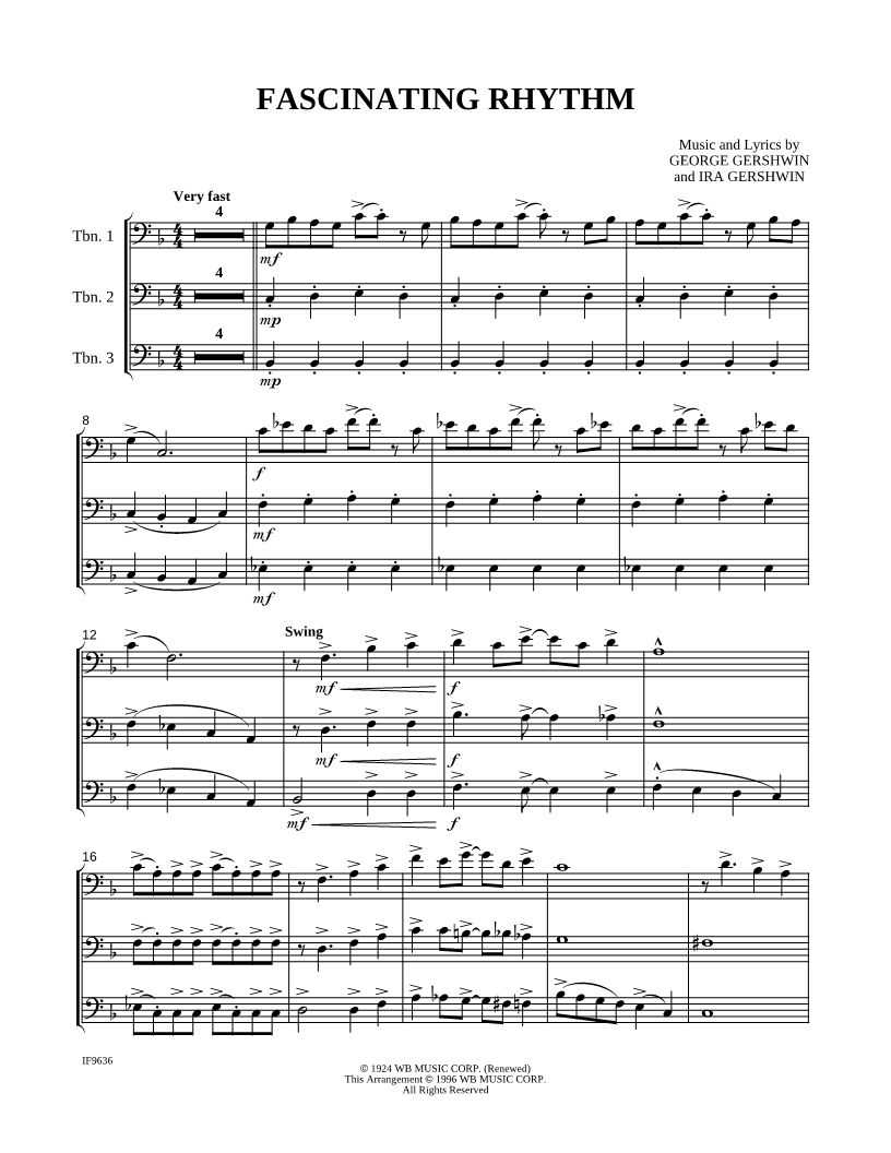 Trombone 1, range: C3-A4 Trombone 2, range: A2-F4 Trombone 3, range: A2-D4 | |