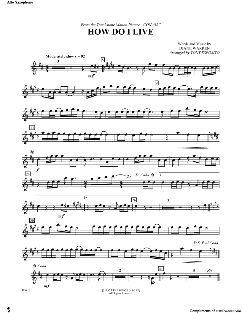 Collection: How Do I Live For Alto Saxophone and Piano Accompaniment