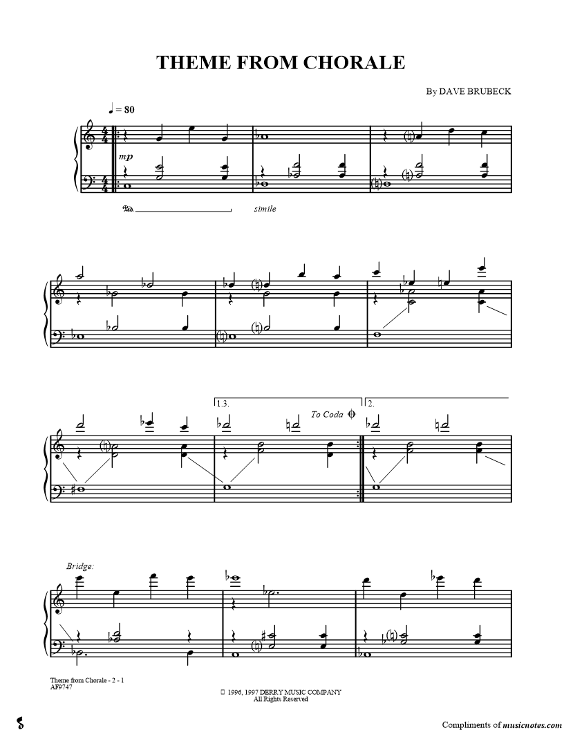 Dave Brubeck - Nocturnes for Intermediate/Advanced Piano |
