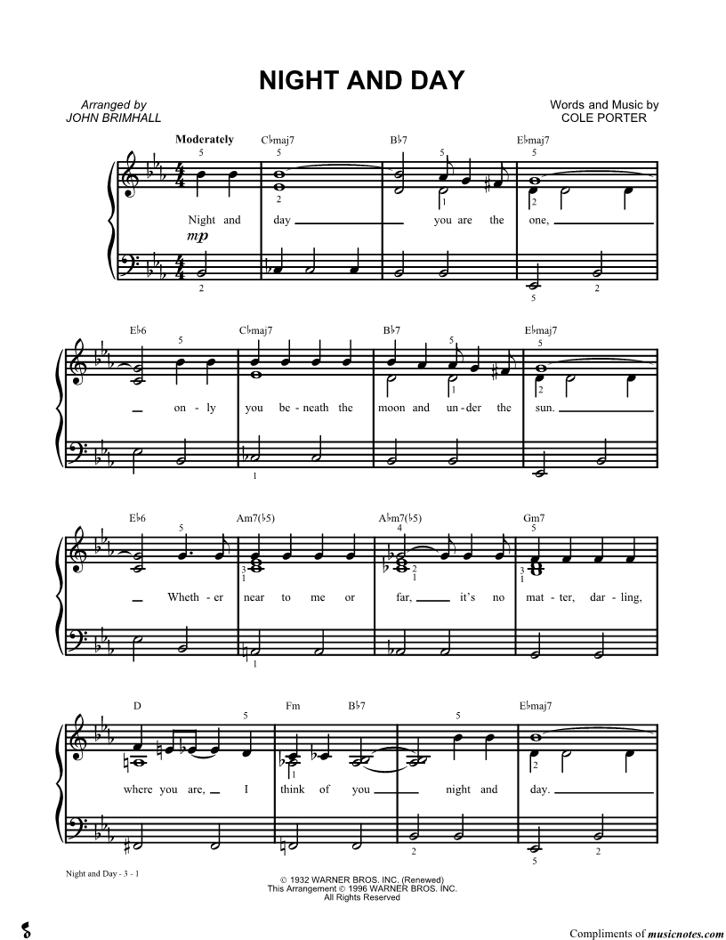 Night and day you are the one, only you beneath the moon and under the sun. |