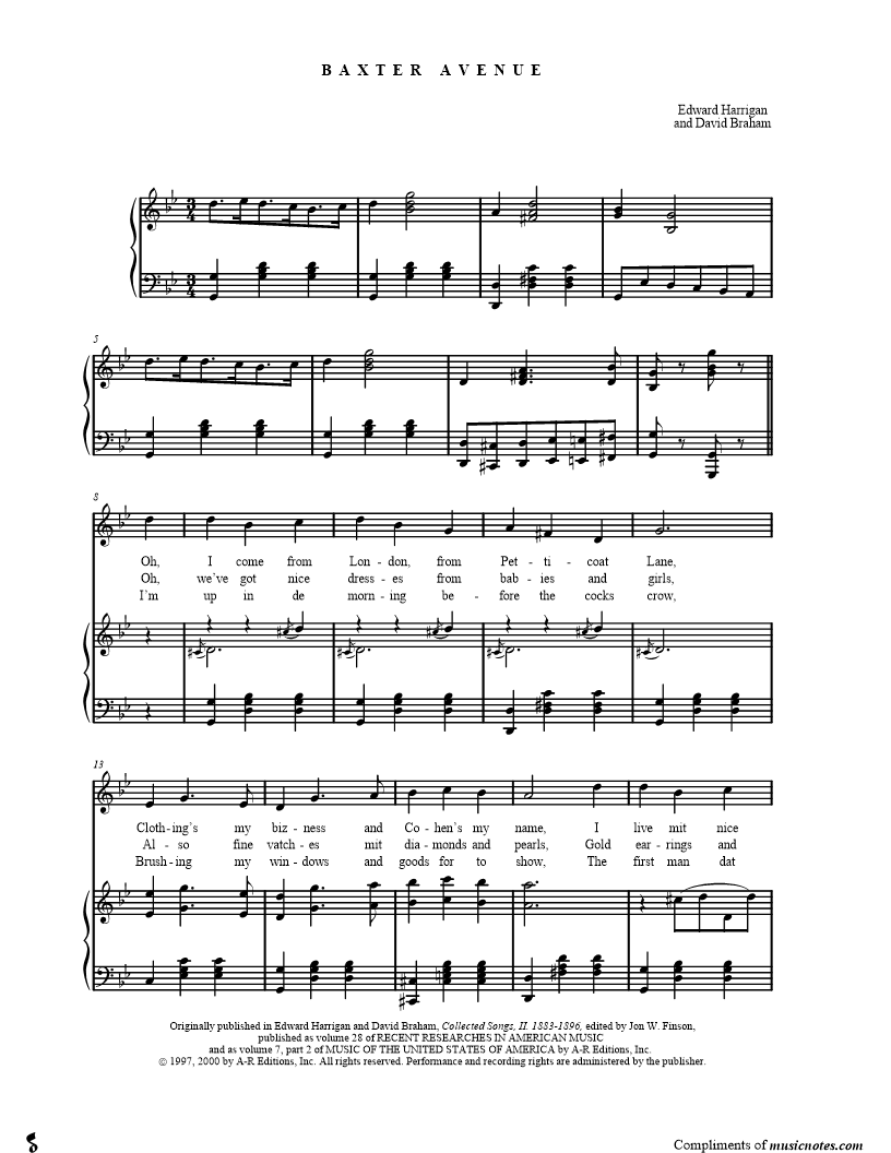 Oh, I come from London, from Petticoat Lane, Clothing's my bizness and Cohen's my name, I live mit nice peoples that work night and day, Driving good bargains right down to de bay. |