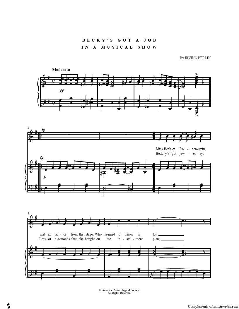 Miss Becky Rosenstein, met an actor from the stage, Who seemed to know a lot; He said, "You're losing time Working for your father with a shape like you have got. |