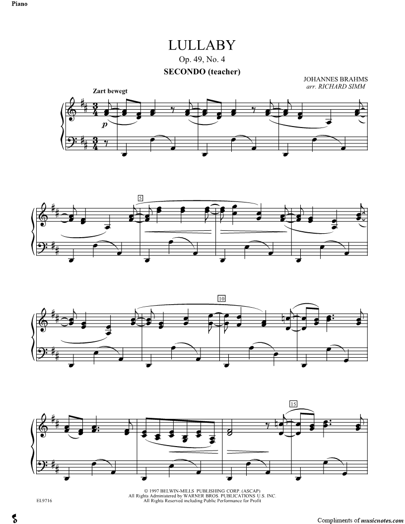 Lullaby (Wiegenlied) Opus 49, No. 4 - Piano Secondo |