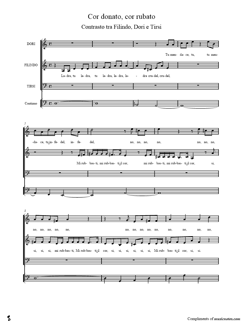 Tu mendace, tu, tu mendace, tu\uinfedel, infedel, no, no, no, no, no, no, no, no, no, no, no, no, no, no, no, no, no, no, no, no, no, Ch'in don, l'hebbe, no'l rubbo\` Mi donasti, mi donasti\uil cor, mi donasti, mi dona |