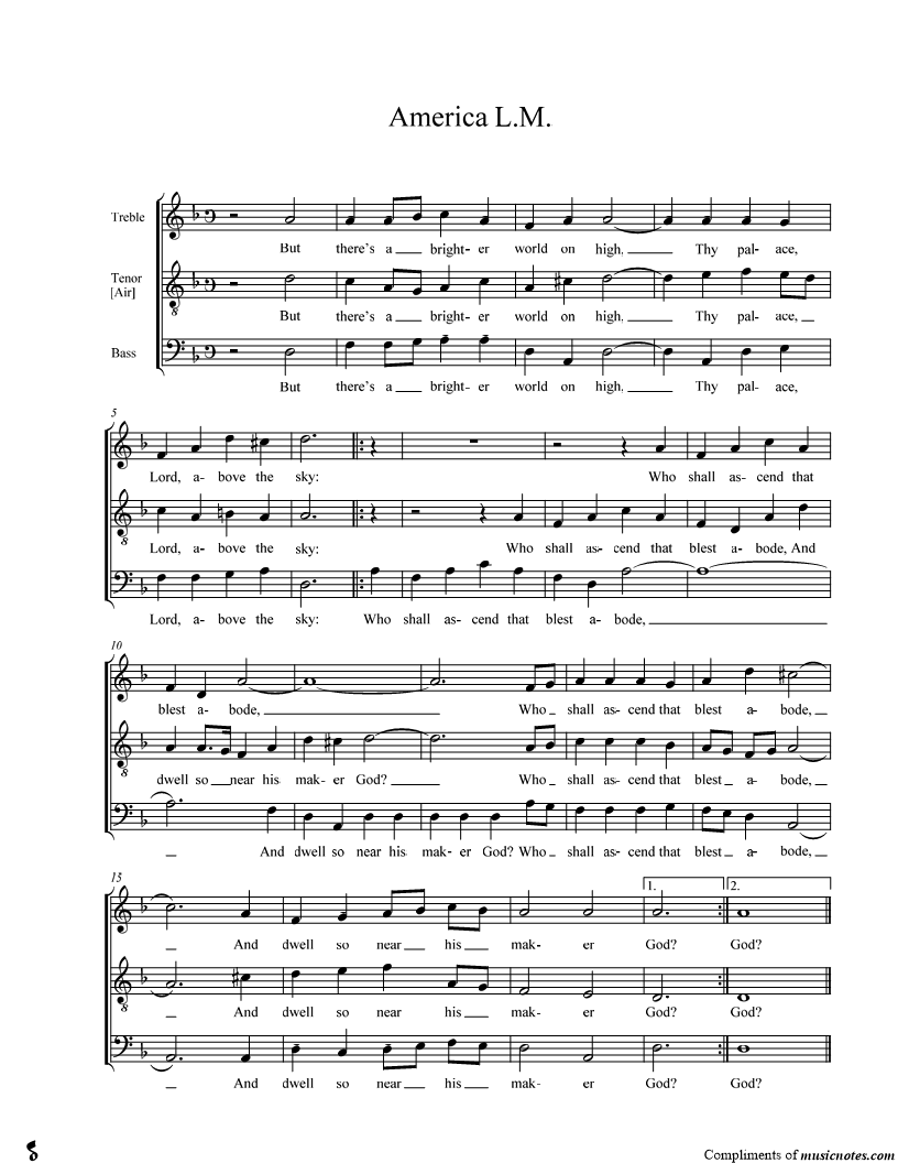 But there's a brighter world on high, Thy palace, Lord, above the sky: Who shall ascend that blest abode, And dwell so near his maker God? |
