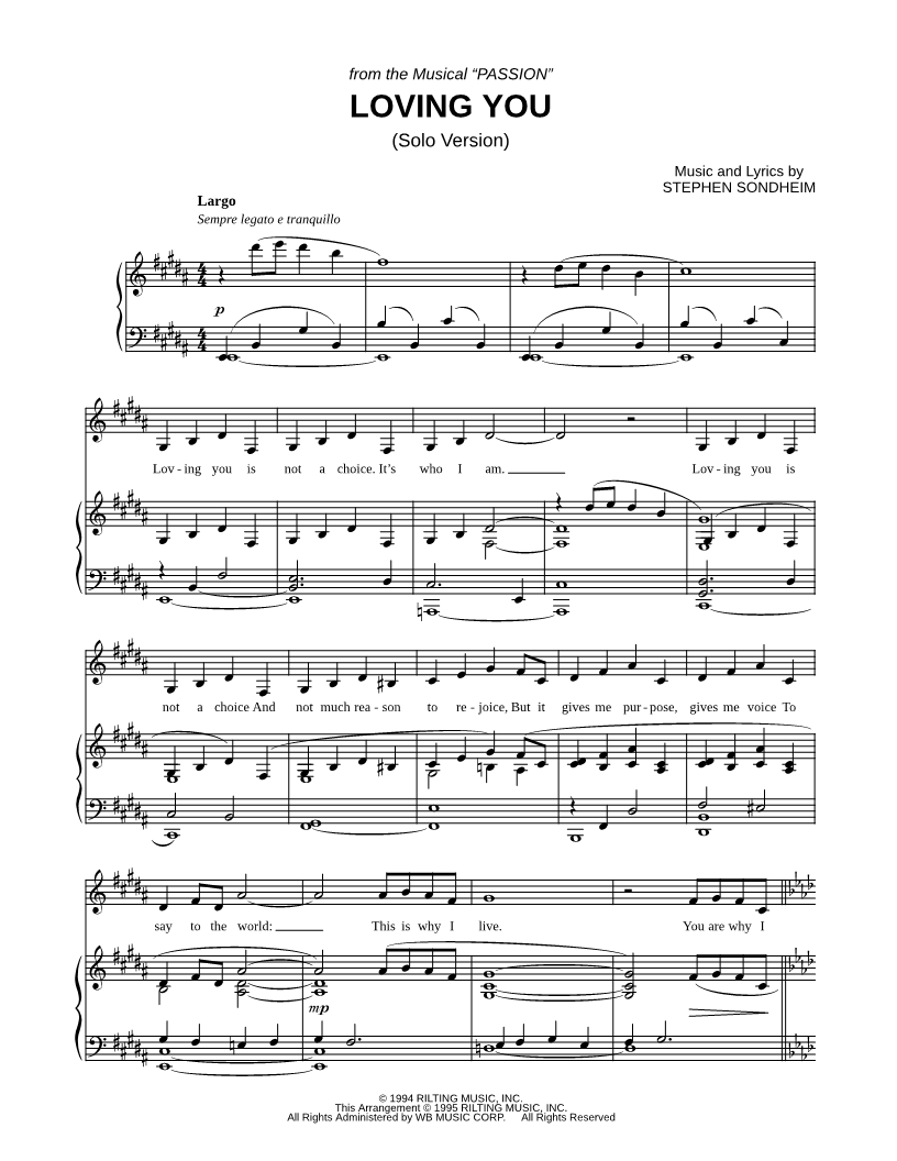 "Great arrangement of Loving You by Stephen Sondheim from the musical Passion. This arrange..." Read reviews