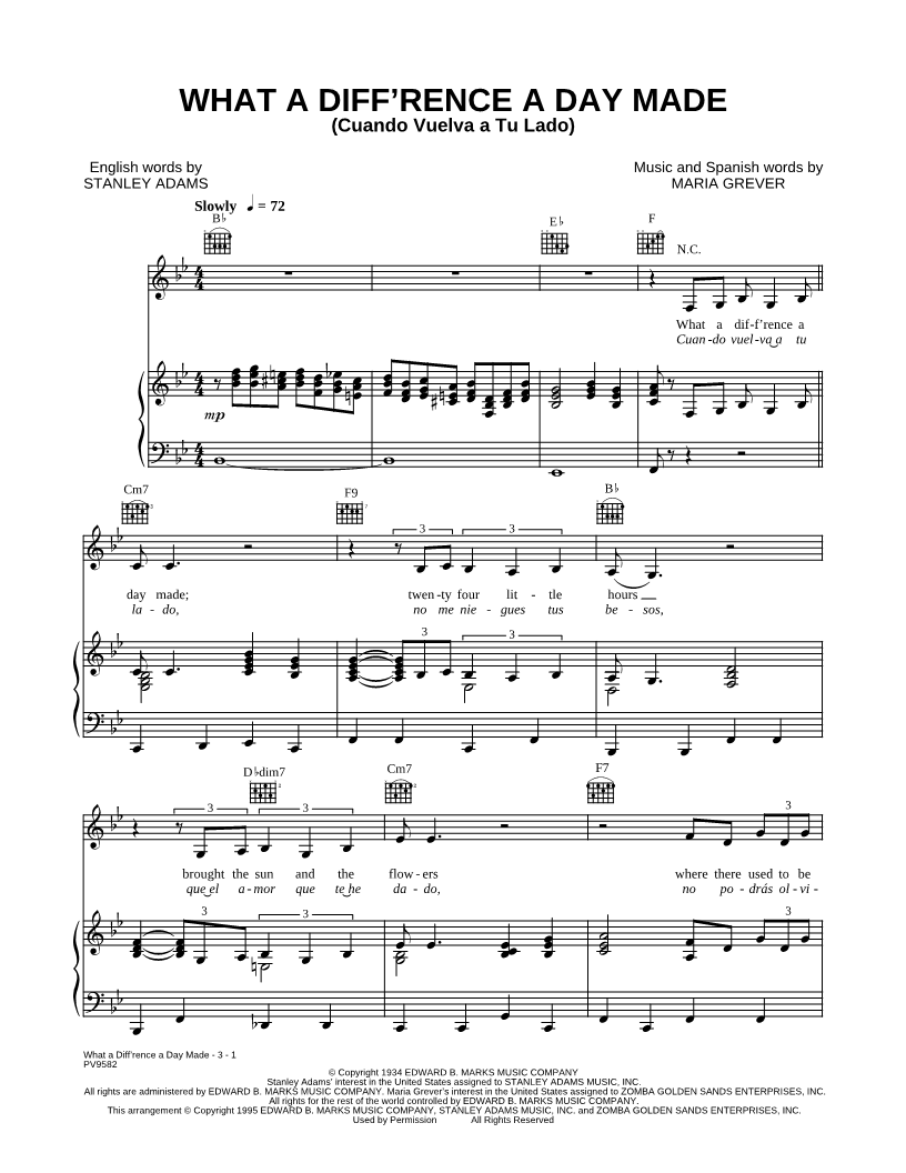 What a diff'rence a day made; twenty four little hours brought the sun and the flowers where there used to be rain. |