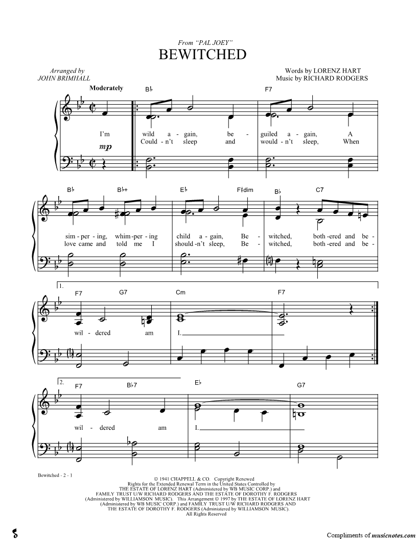 I'm wild again, beguiled again, A simpering, whimpering child again, Bewitched, bothered and bewildered am I. |