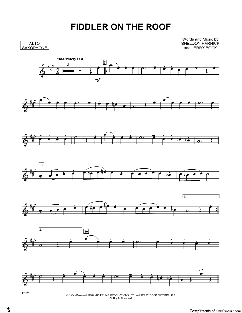 Fiddler on the Roof - Alto Saxophone |