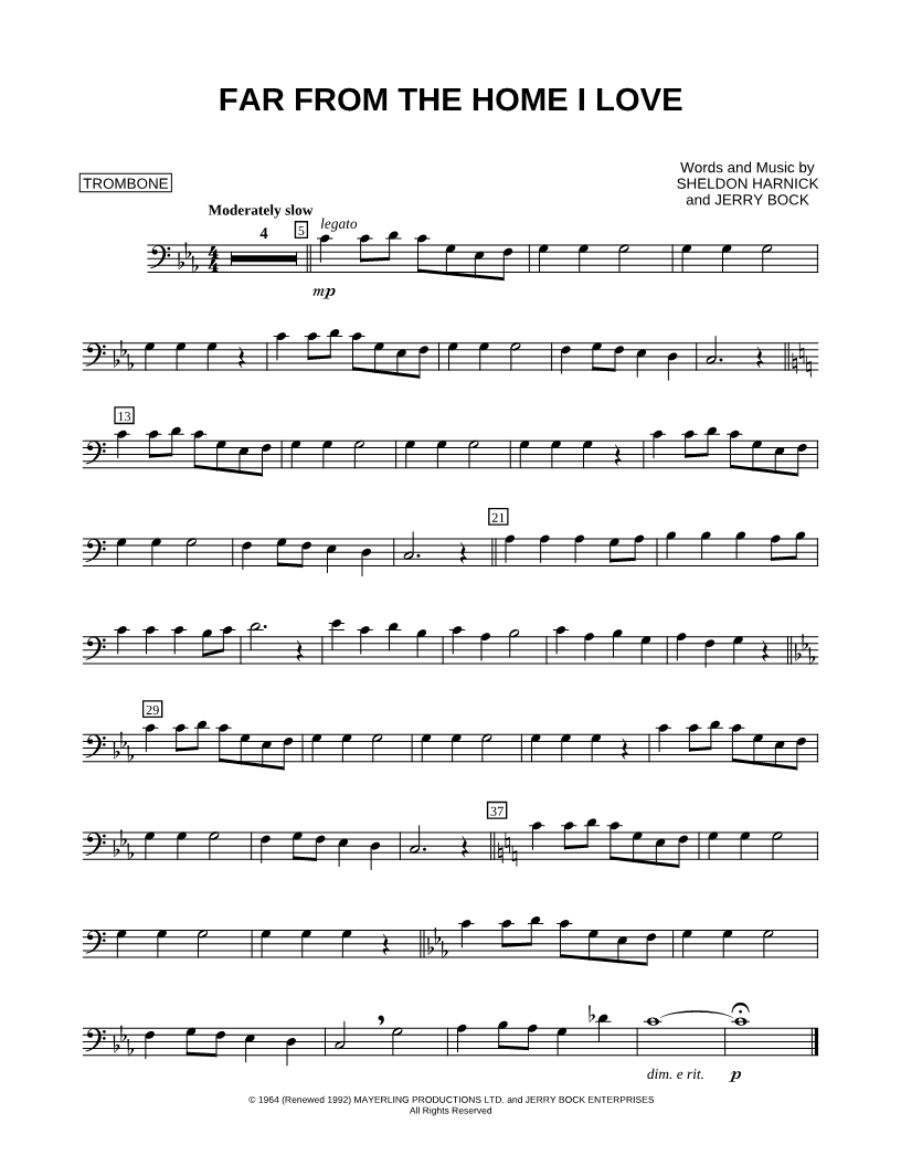 Far From the Home I Love - Trombone |