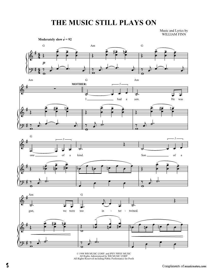 Musicnotes sells a wide variety of digital sheet music products including Singer Pros, Beginner Notes, Choral music, Piano Solos, Lead Sheets, Piano/Vocal/Guitar, Solo and Accompaniment, and fretted instrument tablature.