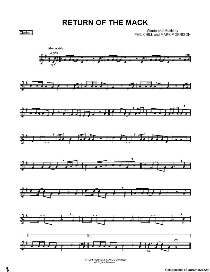 Return of the Mack - Clarinet |