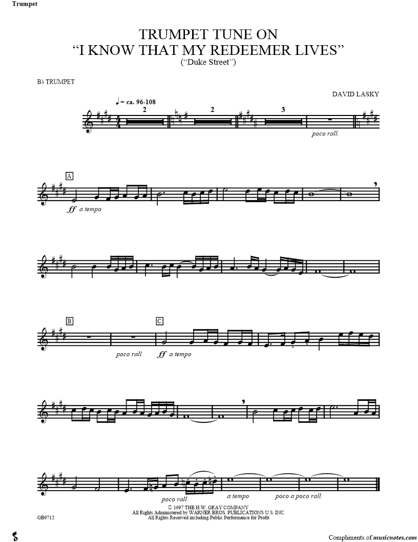 Trumpet Tune on "I Know That My Redeemer Lives" |