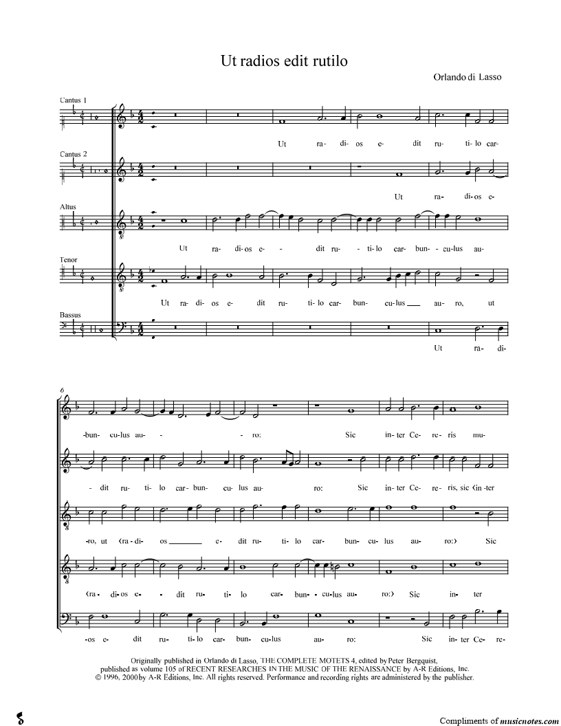 Bass Voice, range: F2-Bb3 Cantus 1, range: C4-D5 Tenor Voice, range: C3-Eb4 Altus, range: F3-A4 | |