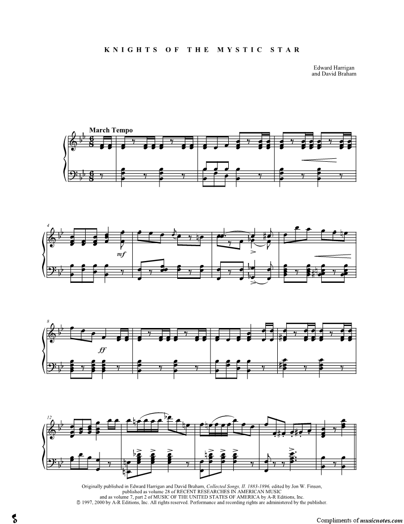 We represent a mighty cause, Dat is to penetrate, De jungles of Dark Africa, All for to educate, The savage of the wilderness, That's naked over dar, Show him the incandescent light, All of the Mystic Star. |