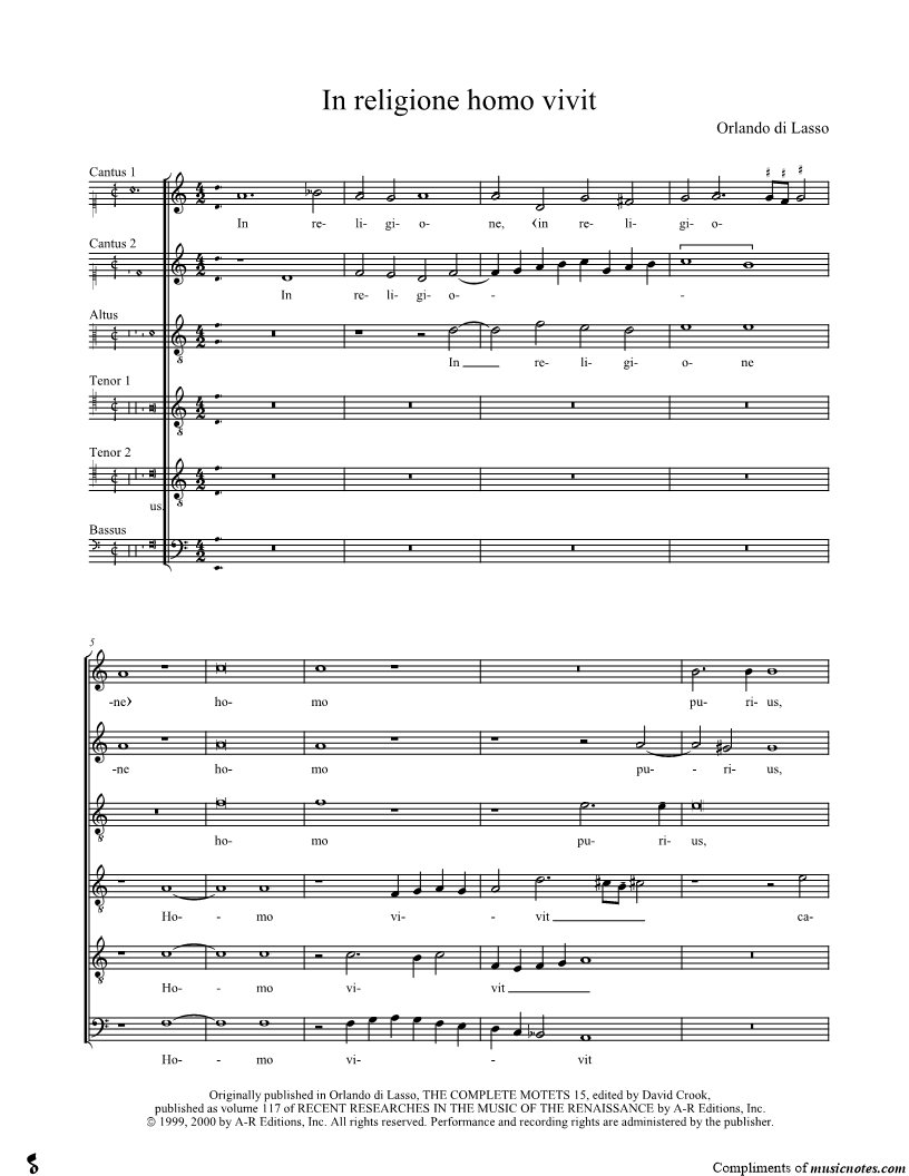 Tenor Voice 1, range: D3-F4 Altus, range: G3-F4 Bass Voice, range: E2-A3 Tenor Voice 2, range: D3-F4 Cantus 1, range: D4-D5 Cantus 2, range: D4-D5 | |