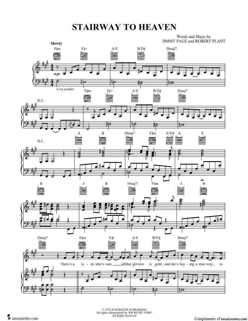 There's a lady who's sure all that glitters is gold and she's buying a stairway to heaven. |