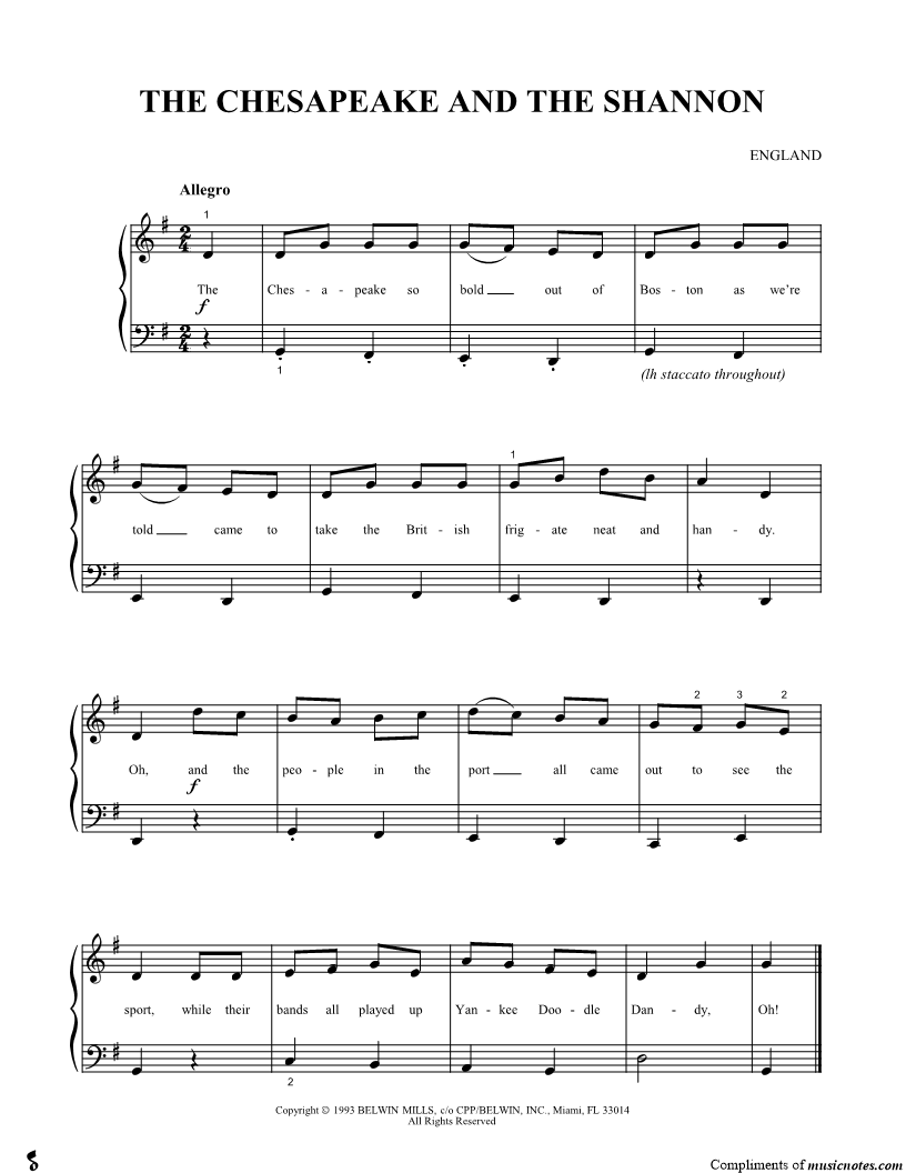 The Chesapeake so bold out of Boston as we're told came to take the British frigate neat and handy. |